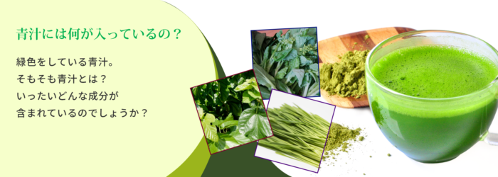 大麦若葉やケール、明日葉などの緑色の野菜が使われている青汁。